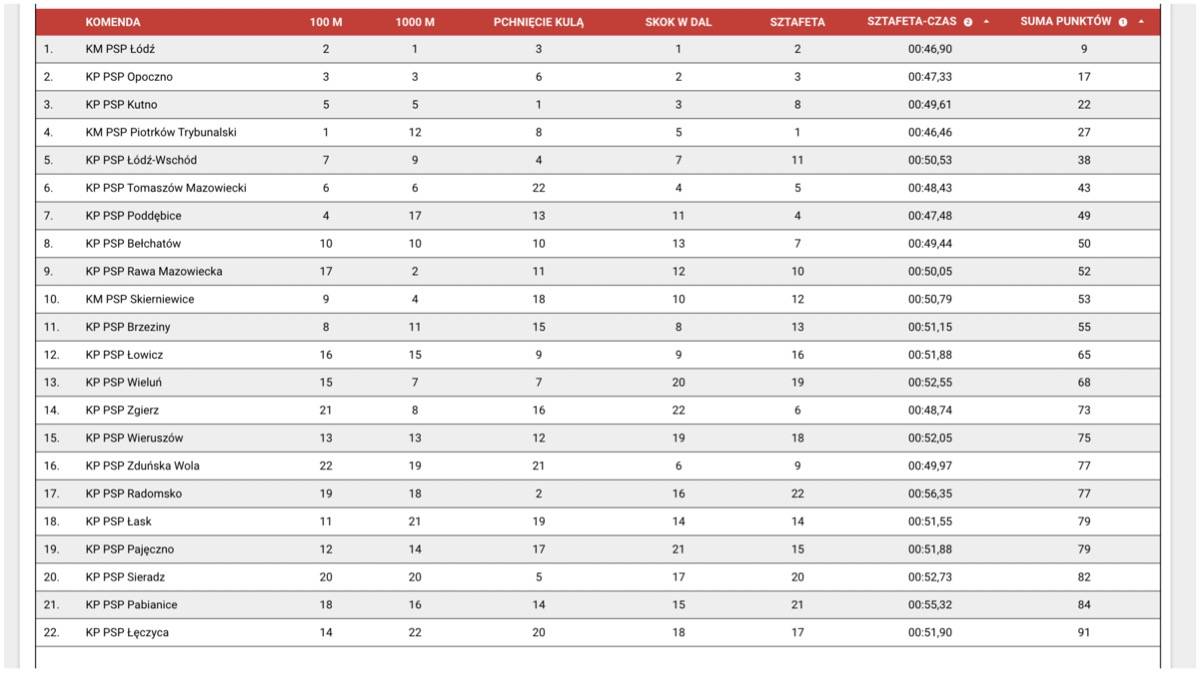 Strażacy ze wszystkim jednostek powiatowych PSP mierzyli się w biegu na 100 m, skoku w dal, pchnięciu kulą, biegu na 1000 m i sztafecie 4 x 100 m.
