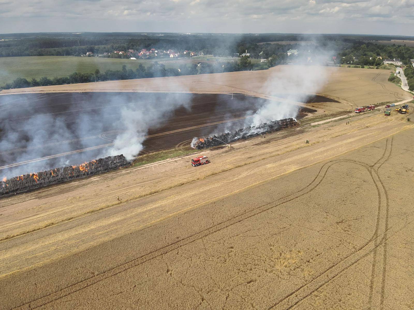 Dobra informacja jest taka, że dzięki szybkiej interwencji strażaków i pomocy lokalnych rolników, udało się obronić przed ogniem około 100 hektarów upraw zbożowych.