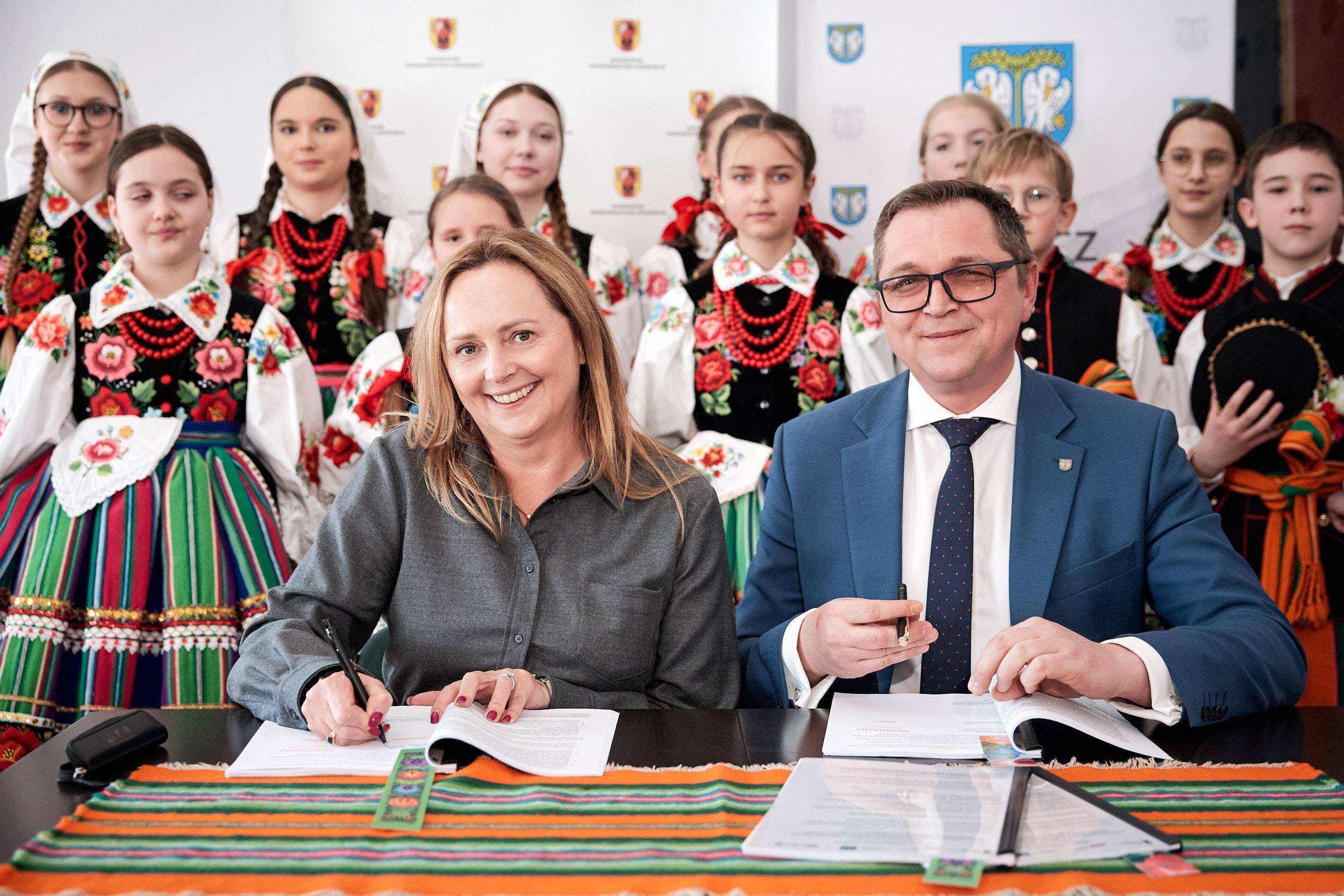 - A folklor to jest opowieść o nas samych. I to od nas zależy, jak ją napiszemy. Trzymam mocno kciuki, abyście napisali piękną historię, którą z dumą będziemy przekazywać kolejnym pokoleniom - mówiła marszałek Joanna Skrzydlewska zwracając się m.in. do twórczyń ludowych i dzieci z zespołu ludowego Koderki, które towarzyszyły władzom Łowicza przy podpisaniu umowy na dofinansowanie Centrum Folkloru.