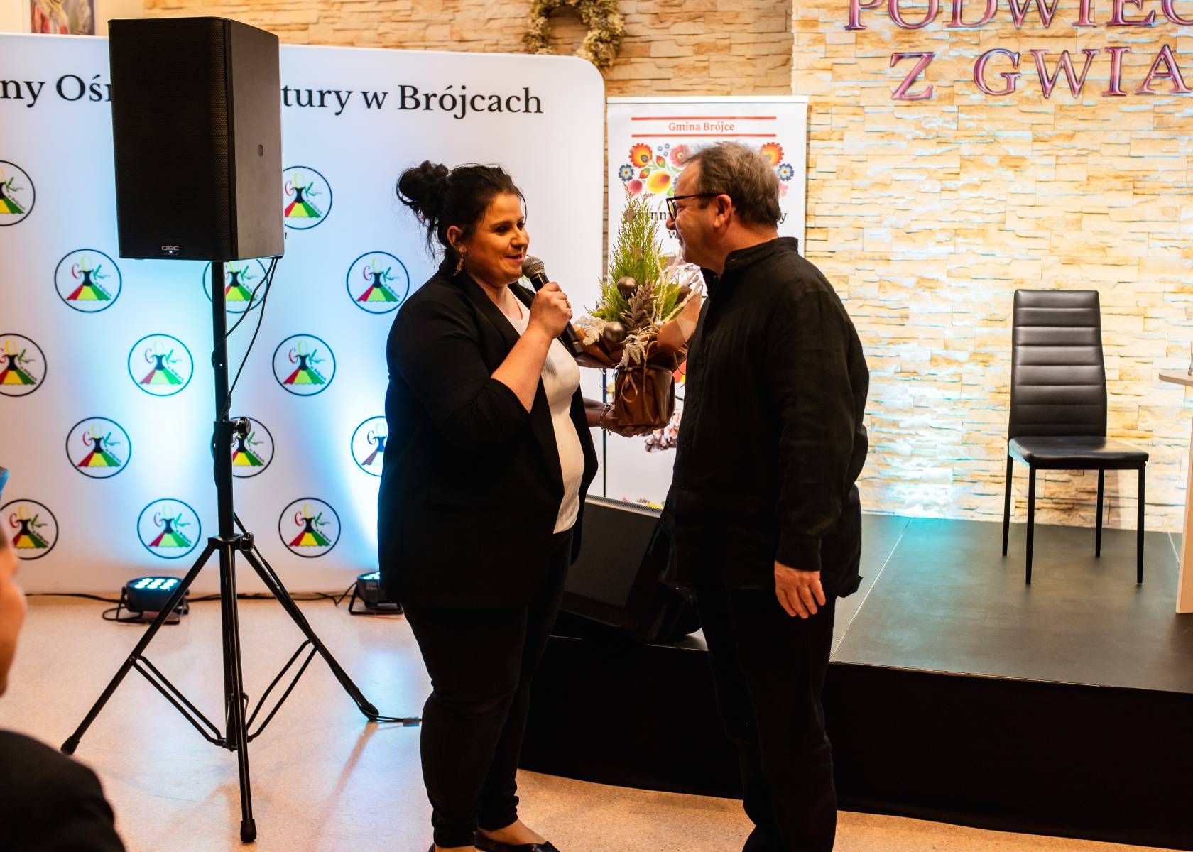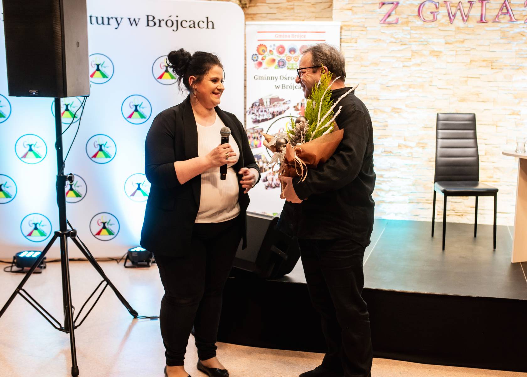 Po części oficjalnej artysta z ogromną życzliwością rozmawiał z uczestnikami oraz pozował do pamiątkowych zdjęć. Wieczór zakończył się podziękowaniami – Wójt Gminy Brójce Radosław Agaciak wyraził wdzięczność za obecność i inspirujące spotkanie, a dyrektor GOK w Brójcach, Justyna Jurga-Maszczyk, wręczyła Zbigniewowi Zamachowskiemu okolicznościową kompozycję kwiatową.
