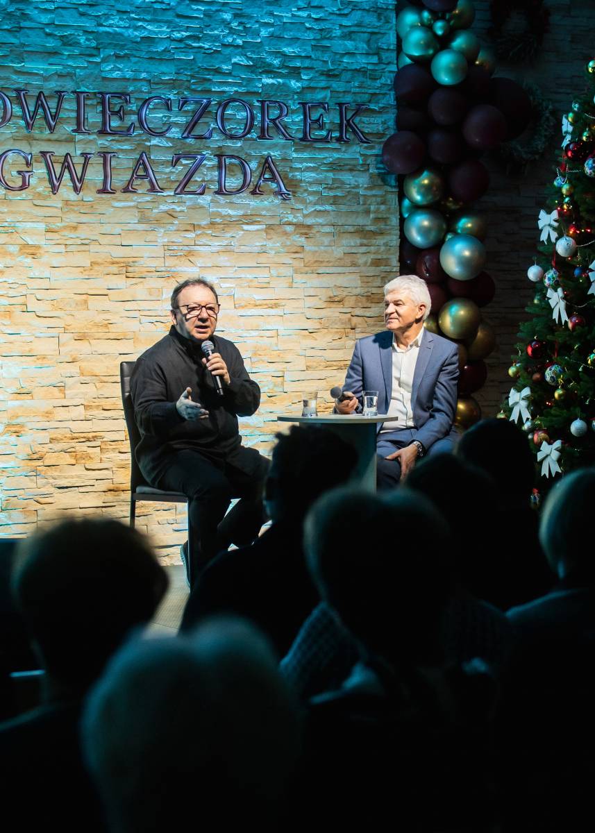 Spotkanie, tradycyjnie prowadzone przez Leszka Bonara, przebiegało w atmosferze swobodnej rozmowy, pełnej anegdot i ciekawostek z życia artysty. Nie zabrakło także interakcji z publicznością – Zamachowski chętnie odpowiadał na pytania i dzielił się refleksjami, czym zaskarbił sobie sympatię zgromadzonych. Wyjątkowym momentem wieczoru były piosenki wykonane przez gościa, które nadały wydarzeniu szczególnego klimatu. Na koniec wszyscy wspólnie zaśpiewali kolędę, podkreślając przedświąteczny charakter spotkania.