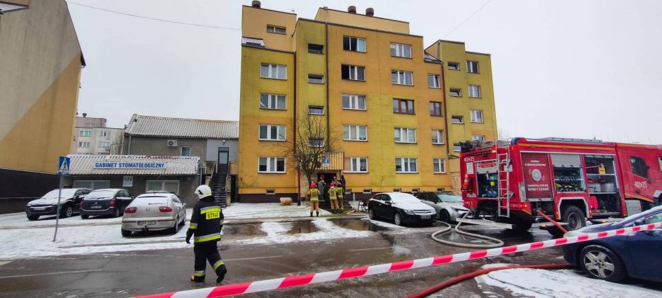 - Pokój dzienny był cały objęty ogniem, było bardzo duże zadymienie, a gęsty dym wydobywał się przez wszystkie możliwe otwory okienne, w tym także na klatkę schodową - dodaje Stefanek.