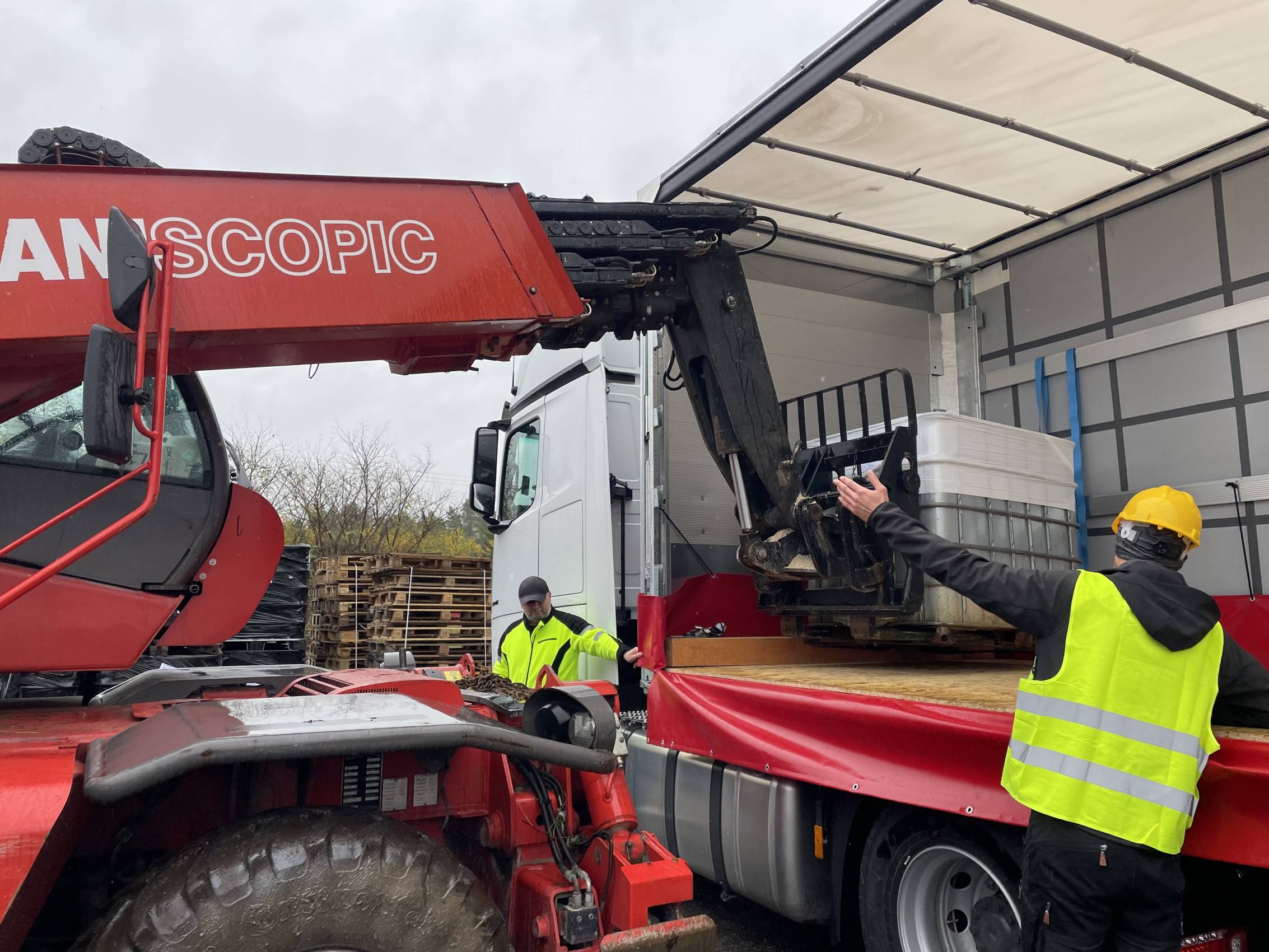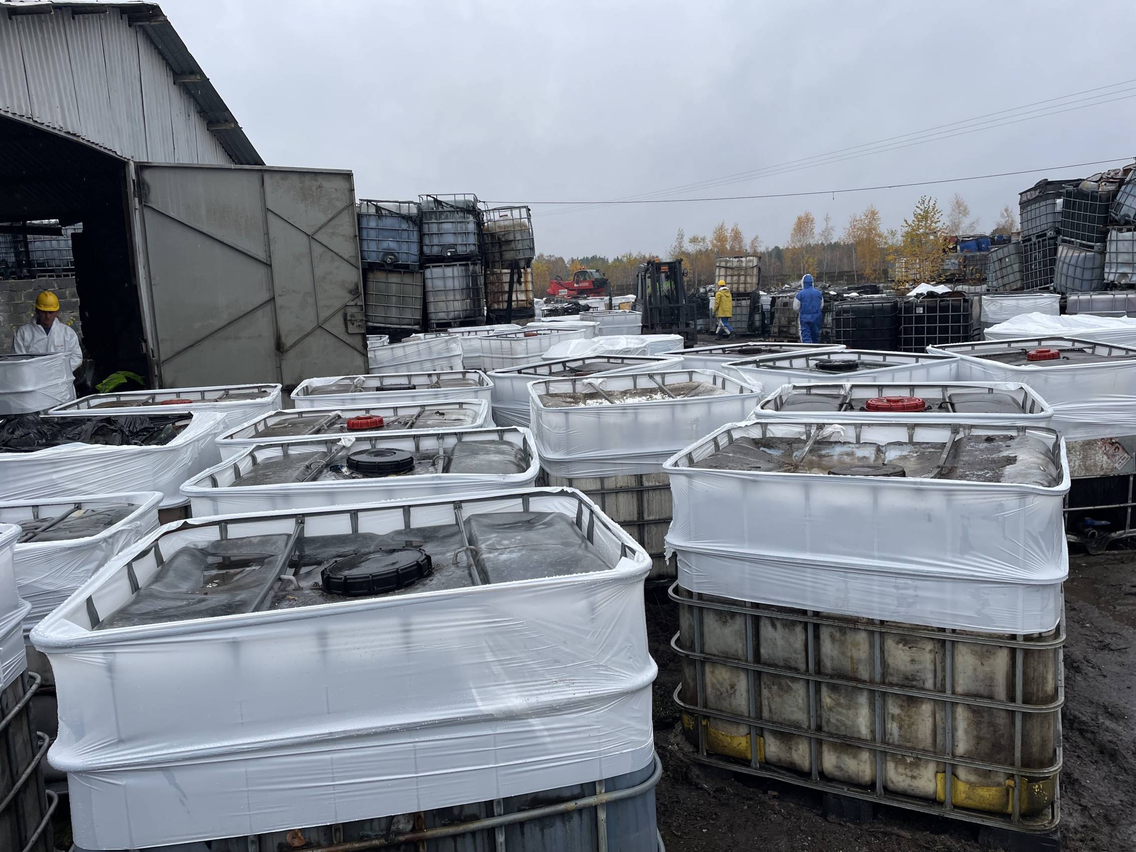 W Chabielicach rozpoczął się kolejny, kluczowy etap prac związanych z usuwaniem niebezpiecznych odpadów. W poniedziałek, 3 listopada, ze składowiska odjechało już kilka transportów z mauzerami zawierającymi substancje niebezpieczne – w momencie naszej obecności był to trzeci konwój. To początek intensywnej akcji, która ma doprowadzić do całkowitego oczyszczenia terenu.
