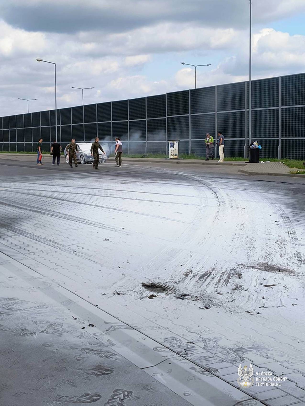 Bezpośrednio przed dystrybutorem paliwa zapalił się samochód osobowy. Na pomoc natychmiast ruszyli st. szer. spec. Krzysztof, st. szer. spec. Filip, ppor. Konrad oraz ppor. Tomasz. Żołnierze 9ŁBOT, nie zważając na zagrożenie, podjęli skuteczną akcję gaśniczą, a następnie przepchnęli dymiący pojazd w bezpieczne miejsce, kontynuując gaszenie do czasu przyjazdu straży pożarnej. Cała akcja trwała około 20 minut, zużyto 10 gaśnic w tym 2 agregaty. W międzyczasie obsługa stacji zamknęła jej działanie, a na miejsce została wezwana straż pożarna, która przejęła dalsze działania.